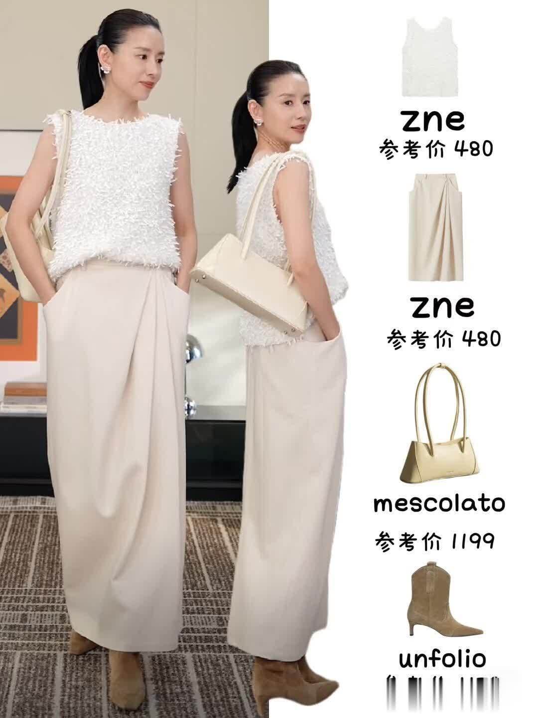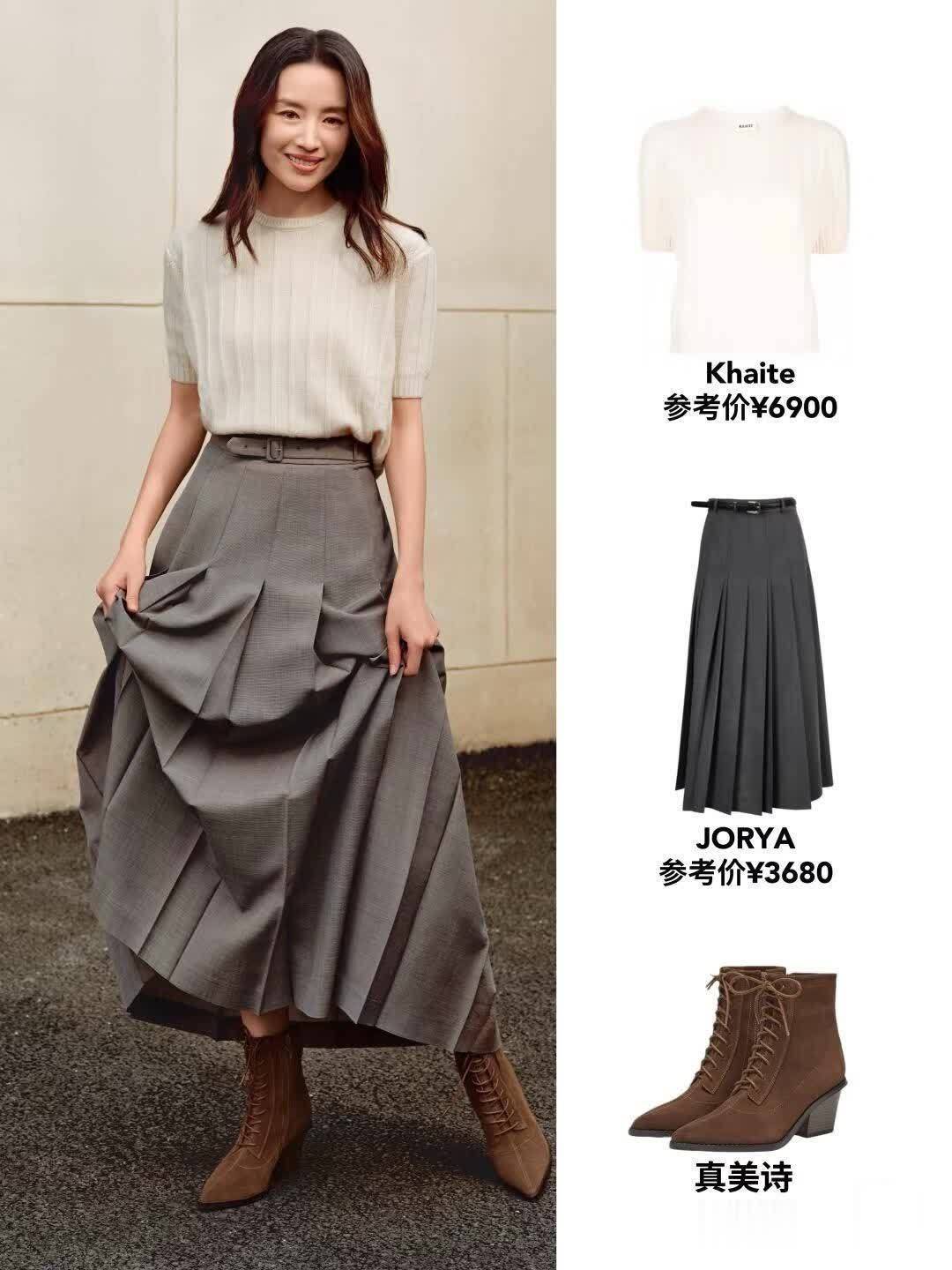 再看配饰,棕色乐福鞋踩起来软软的,走路久了也不磨脚;米色的包包形状圆润,皮质看着就很有质感,颜色和鞋子呼应,整体就很统一。戴对小巧的珍珠耳钉,精致感瞬间拉满,又不会抢衣服的风头。